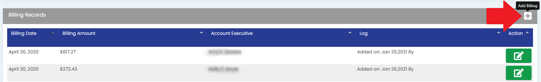 To add billing to a contract placement, go to the original placement and scroll down to the Billing Records section, as shown in the figure below. Click on the Add Billing button.